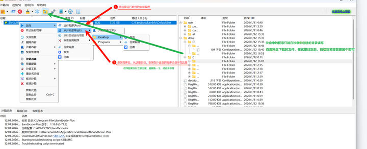 以下是官网链接。 PS:沙盒除了可以限制流氓软件,还可以用来实现应用多开。 再贴一张入门级的操作示意图。 |