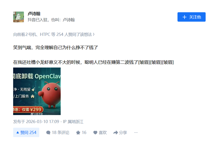 其实吧……真正长期跟进了解AI技术发展的朋友都知道,OpenClaw这个东西是一个非常过渡的产品,它本质上就是让你在本地给你的 AI 权限,然后让你的 AI 去接管你的电脑,在此基础上,你只需要像和网友在聊天工具里对话一样,去交代你的 AI 要做什么。然后你的这个 AI 就会自己分步骤去完成这个任务。 OpenClaw会自行决策在这个任务里他需要做什么。比如说,如果你交代它去写一个回复最重要的邮件的功能,他就会先自己写一个脚本去调用你的邮箱,然后再写一个脚本去给你邮箱里的所有邮件按照重要程度分类。 接着,他会再写一个新的 AI 功能,去按照优先级回复邮件。可能他还会觉得需要再写一个功能,新增一个写作的风格规范,去模拟你之前的写作风格。这几个步骤全做完之后,他才会去给你自动地做邮箱回复。 但是在那个过程中,它会因为目前调用的 AI 注意力太弱的问题,没有办法一步到位。这需要消耗可能 5 倍以上、甚至 10 倍的 token 去做一个连续的任务。与此同时,它还会生成很多冗余的步骤,最终可能两个小时都没有办法做完你一个人半个小时就能做的事情。如果你用免费的 API,那么你可能一个晚上都做不完一个你自己写 10 到 15 分钟就能做完的任务。 而如果你用付费的 API,在它注意力够集中的情况下,token 的消耗就会变得非常恐怖。可能你一晚上睡觉,第二天起来就发现自己有了几千块钱的 token 账单。 因此在目前这个情况下,OpenClaw只是一个纯粹的过渡性工具。我一两个月前就已经用过这个产品,当时我的看法是谁买这个产品谁傻逼。其实 OpenClaw 这个产品发布之后,一开始的营销过程也确实很傻逼。一开始它先蹭 Anthropic,创始人叫自己ClawdBot,蹭Claude的热度,但是仅仅两天就收到了Anthropic的律师函,创始人又从ClawBot改名成Moltbot,但是很快又因为这个名字太过平平无奇而又改名成了OpenClaw,去蹭OpenAI的热度。没想到OpenAI果然看上了OpenClaw,山姆奥特曼直接收购了OpenClaw的创始人。 这里有个很鸡贼的事情:OpenAI没有收购OpenClaw这个产品,只是收购了OpenClaw的创始人。 我之前其实觉得,OpenAI 收购 OpenClaw 这个事儿很匪夷所思。因为 OpenAI 自己也有 AutoGPT 这个产品,跟 OpenClaw 是很像的。而现在,一两个月以后,觉得OpenAI这一步棋本质上是为了混淆视听。 到今天我依旧觉得OpenClaw不是一个很优秀的产品,但是 OpenAI 把OpenClaw收购了之后,就导致现在大 A 上面市场情绪火热,并且其他的厂商突然就在跟进。 那些跟进的厂商们都觉得OpenClaw是个好产品,但实际上OpenClaw的这个技术栈是不对的,这个路线是不对的。最多半年以后,肯定会有更新且更完善的聚合AI Agent技术路线。甚至都不用半年,因为 Anthropic 自己就有 Claude Agent,OpenAI 自己也有 AutoGPT+Operator,谷歌也有自己的Gemini CLI,这些都与OpenClaw是同一个技术方向,并且远远比OpenClaw走得更远。这也是OpenAI收购OpenClaw创始人但没有收购OpenClaw产品的另一个原因。 总而言之,我的看法是大家没有必要去追这个产品线,以及和这个产品线相关的公司概念,也都没有必要去追,这个产品线不是一个能够引爆全场的产品线,只是一个想要撬动杠杆、撬动大资金盘的一个短线。最多三个月到半年市场上就会出现能够完全代替OpenClaw(龙虾)的产品,甚至字节的豆包Agent助手都比OpenClaw更像你的“智能管家贾维斯”。 而OpenClaw的本质,就是让一只猴子去管更多的猴子来帮你一起敲打字机,它只能疯狂地浪费你的token,而没办法帮你真正意义上地加速做任何事。 |