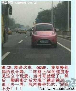 它是不是更适合作为大黄蜂的居家拖鞋出现在新一部的《变形金刚》里? 11.QQ me 这个大家很熟悉了,对,就是那个车头和车屁股长得一样的逗比车型...... 奇瑞外观设计的巅峰之作,本来以为这货已经被大家玩腻了,但是应好多知友要求,还是贴出来吧。 |