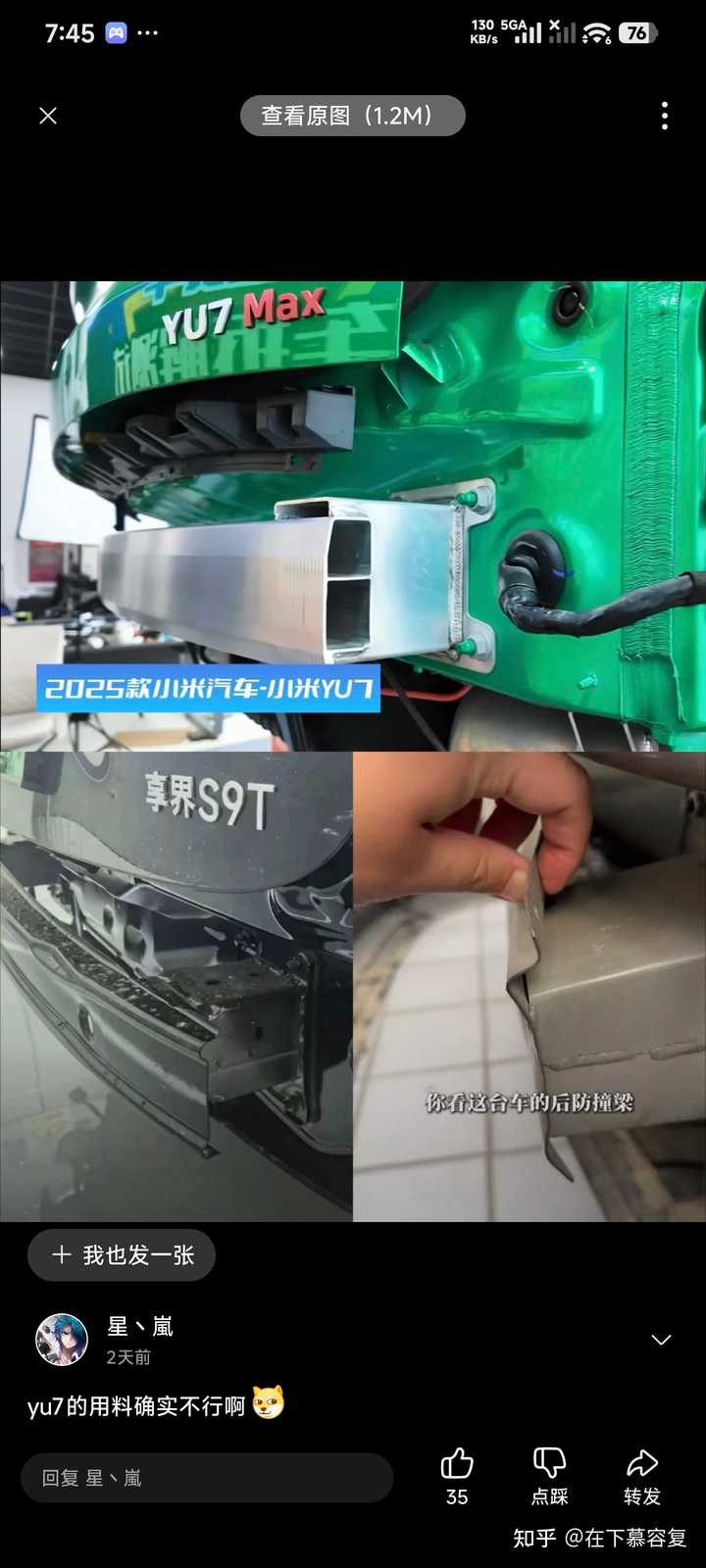 这位花粉朋友对于后防撞梁对比的图片是这么解释的。还有两个点赞的,证明鸿蒙 群体并非个例。 那么我就请这位花粉,和其他鸿蒙 朋友帮我解释一下。 |