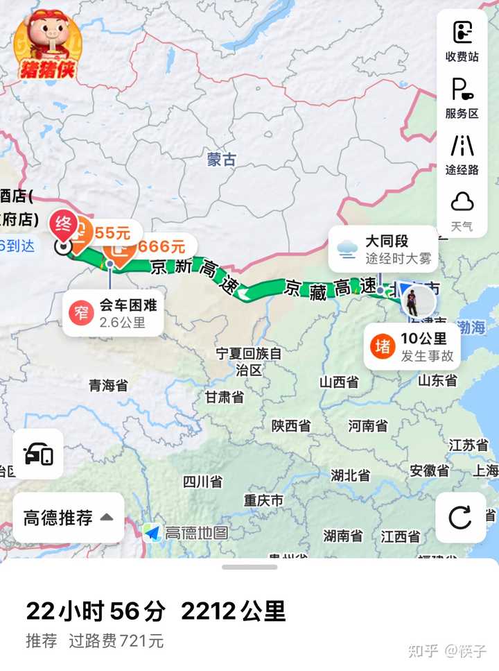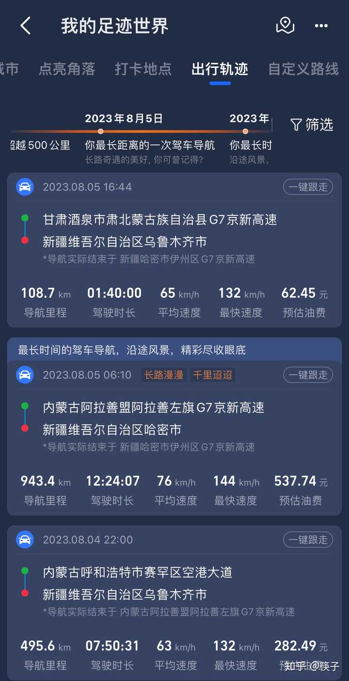 去年夏天,8月初吧。。走了一趟新疆。。。 北京出发,接了一单顺风车,到呼和浩特的。大几百块。而且还分担高速费。 于是直接抬脚就走,下午出发晚上赶到了呼和浩特机场。把客人送到之后,我有两个选择。 一个是接一单回北京的。。另一个是找个地方逛吃逛吃,住一晚。 但搞了半天,没有合适的单子。。犹犹豫豫,跑到机场吃了点东西,坐车上就发呆了。。。很茫然。 这时候新疆哥们儿找我问点儿啥事儿,就顺便聊了两句。。然后让我找他玩儿。。 我也是脑袋一热。。。直接就说,你等着。 然后的事情就简单了。。 我大概下午三四点,从北京出来的。到呼和浩特大概九十点钟。。脑袋一热,直接出发。。 顺着G7京新高速往新疆赶。。 路上真没什么车。。一路上都是夜里,也没什么景色。一直开一直开,天都蒙蒙亮了。。 这时候应该在巴彦淖尔附近,实在是有点累,就在车上打了个盹儿。。也就是一两个小时的样子,就被大货车启动的声音弄醒了。。。 早上,大货车也开始跑活儿了。本来大货车晚上也会找地方睡觉的。早上6点左右都起来洗漱,开拔了。 我也一样,开始往新疆赶。。目的地是哈密。 在中午最热的时候,我穿越了G7的沙漠地带。。茫茫沙漠,戈壁滩。没有一棵树。路面都要晒化了。。。服务区都没什么车,好几个服务区也没有加油站。 连续过好几个服务区,竟然都没加上油,。还有100的续航。。慌了。 终于在进甘肃附近,加上了油。大概下午五六点钟,终于进了新疆,过了骆驼圈子收费站。。 这时候,我已经从北京家里出发,过去了整整24个小时了。。不对,26个小时了。。。 行驶里程已经超过2000公里了。。 大概在晚上9点左右,终于到了哈密的一家7天酒店。赶紧住下。洗漱,出门吃一盘过油肉拌面。。 回来直接躺了。。 第二天早上起的不算晚,8点多。。9点准时出发。 今天的行程很简单,直奔新疆伊犁,伊宁市。全程大概1300公里。。 12点左右,过境吐鲁番,还不是最热的时候,但车显温度也有四十多。。吃了一份不好吃的饭,继续跑路。 过了乌鲁木齐,一路向西,在马上要上坡,去赛里木湖之前,突然就觉得有点恶心。。在服务区足足坐了一个小时。。。 天黑前,还是算看到了赛里木湖。。黑了之后,正好过果子沟,一路劳累,加上果子沟那一段绕来绕去,车都开的贼快,我路也不算特别熟。心惊胆战。。 最终我在夜里12点左右,赶到了我朋友家楼下。。 也就是说,我用了大概两天多一点时间,横穿了整个中国。 去掉睡觉时间,应该没超过 40 小时。 这还是先要感谢国家,这样的基础设施,是人类历史上最伟大的成就。 全程总计 3500 公里左右,过路过桥费 1200 左右。油费应该有两千多元。 过路过桥费加油费合计一块钱一公里的样子。 俩人一见面,直接先奔烧烤。。啤酒烧烤走起来。。。 |