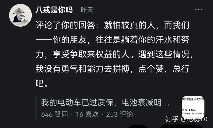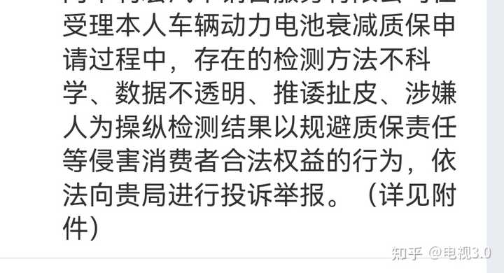 还是坚持给我加2.3度所谓的理论电量!!! 那就继续掰扯掰扯这所谓的2.3度理论电量: 这个理论电量用什么理论计算,算法呢?如果有2.3度理论电量的说法,那么,刚买时电池可用容量46.5度,+2.3的理论电量,原电池容量应为48.8度。 上述算式应该修正改为:(40.724+2.3)/(46.5+2.3)=0.8816393=88.16% 我在现场已经阐述了上述说法,但还坚持这样算。 本质上还是不想解决问题!也就造成了今天这样,双输的局面,一个品牌的建立不容易,盼着能为消费者着想,行稳致远。 11月29日 感谢 @缘木求鱼 解惑 我之前机械的引用GB/T31484,这个标准里,1000次标准循环寿命限值80%,工况循环寿命没有具体规定。由此可知,厂家目前在售车型的三包凭证把衰减限值定为70%,有合理性,至少按我目前的认识,无法对这个数值质疑和否定。 具体到我这个车型,我还是主张电池衰减限值为80%,三包凭证中没作约定,是厂家的过失,这个民法典做了行为准则规范。(2019年的事,可能不适用《民法典》,我相信《民法》也有类似规定)。 当年,普遍的认知是手机电池一般只能用2年。我也担心电池不行,但了解到有衰减80%限量规定,又有8年15万公里质保,才敢下手买。事先没约定,又没明确告知,厂方是存在过失的。 从事情的处理角度看,能得到大家的共情,是因为整个处理过程令人诧异、让消费者们感到彷徨和无助: 0%电量的基础上,继续放电4kwh;再加上2.3kwh的理论电量;若不是我理清楚电芯生产时符合GB/T31484,厂家的说法是:三包凭证没有衰减限值,不负责衰减,只负责安全。理清了这一点,厂家让步执行70%衰减限值。 但是,就算容量下降到70%,我的问题也得不到处理,还要加上这个扯蛋的2.3kwh理论电量和4kwh(电量显示为0%,继续往下放电),这里就接近15%了,也就是说要衰减到55%,我的诉求才可以响应,当然,只是存在的可能性。这也是我揪着不放的原因。 下午去提车回来了。 最近及后续,坚持隔一两天打个电话,也在咨询着律师,为下一步做打算。 12月4日 后续厂家没有再正面回复问题: 电池0%继续放电4kwh合不合理?测试值再加2.3kwh合不合理?我主张的电池衰减限量80%,不予确认或否认。 大概在12月1日或12月2日,跟我沟通一下延期质保,我觉得可探讨。对方提出增加2年5万公里,这个数值可以接受。 我觉得可以的方案是延保至10年20万公里,执行70%限量,搁置争议。 谁知!毫无建树和诚意,今天得到的回复是8年15万公里执行70%衰减限值,后2年5万公里只对安全负责。 跟我的设想有差距,这有什么好聊的! 12月12日,选择了比较省成本的方式,正式对4s店可能存在的违法行为进行举报。 主要是:1、用充电的方法测电量,不符合GBT31484标准要求,标准测量方法应当测放电电量; 2、理论电量2.3kwh毫无依据; 3、已指出上述错误后,坚持用上述错误方法,存在主观上推诿扯皮、故意拖延、无理拒绝。 |