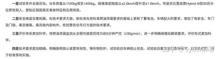后防撞梁堆料唯一的结果就是被电动车这种单轮追尾,凹不进去,厂家赚不到维修钱。 那么2024款为什么升级成合金材质了呢? 是良心发现了? 不,是国标修改了。 2024年12月31日,强制性国家标准GB 20072—2024《乘用车后碰撞安全要求》由国家市场监督管理总局、国家标准化管理委员会批准发布,将于2026年7月1日起正式实施。 2024年发布的文件,在2023年草案已经在各个车企流转是常规操作,首先要确定的是新标准文件能让绝大多数车通过,同时安全性有所提升。 这是认为旧标准中原有的追尾碰撞移动壁障台车已不能真实代表碰撞事故的“平均车辆”特征。随着汽车技术的不断发展,车辆动力形式逐渐增多,在追尾碰撞工况中,除了原标准要求的燃油系统安全外,碰撞后解锁、碰撞后车门开启等安全性能同样值得关注和提升。 于是,做了几个修改 |