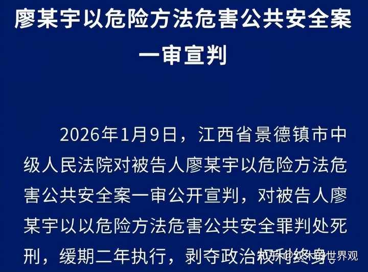 “我儿子撞死你儿子,是天灾。 你非要搞死我儿子,就是人祸。” 曾在网上引发巨大舆论的“景德镇一家三口被撞身亡”案,在今天终于判了。 和很多网友预料的一样,死缓。 主犯廖某宇,以危险方法危害公共安全罪被判处死刑,缓期二年执行,剥夺政治权利终身。 |