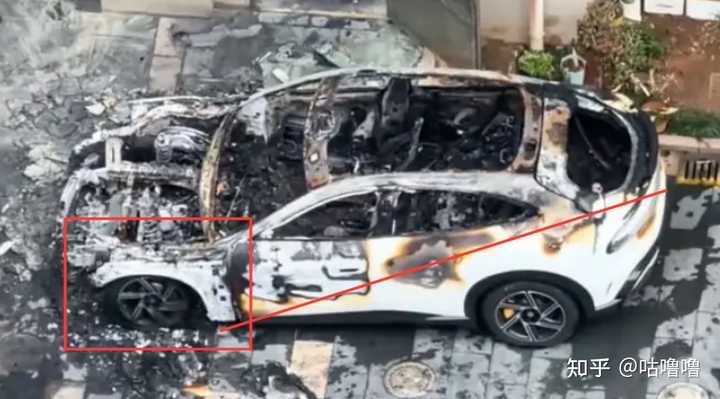 “后悬挂都没塌”证明车尾底盘完整没有过火,因此大概率火是从前备箱烧起来的 |
