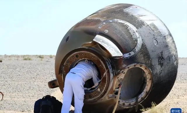 看下图,这是神舟十八号返回舱着陆后的外观,表面一团漆黑。 |