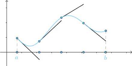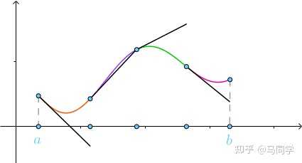 求解思路是这样的,以求曲线长度为例,将曲线分为多个部分,每一部分都用切线来近似曲线: |