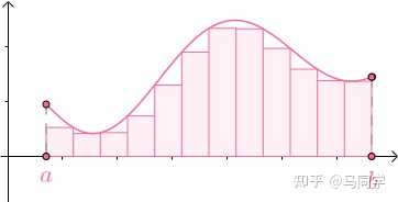 求曲边梯形面积也是类似的,用小矩形来近似曲边梯形的面积,随着小矩形的增多最终得到曲边梯形的面积: |