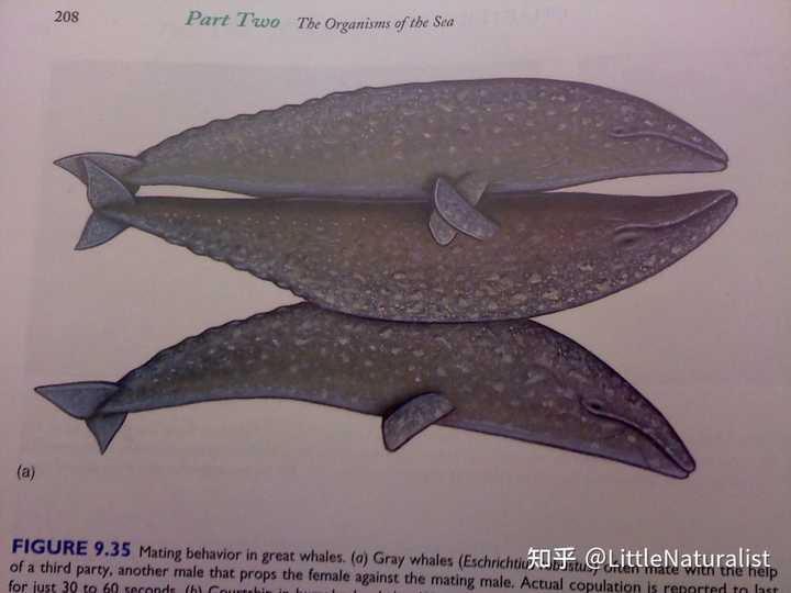 这个回答下有人提到灰鲸的交配。确实,灰鲸交配时是三头鲸共同参与(两头雄鲸和一头雌鲸)。 |