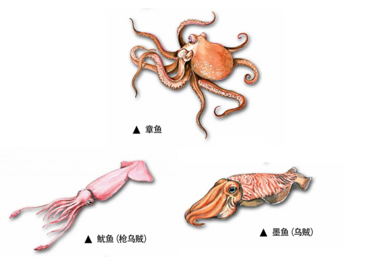 运动的话主要依靠外套膜收缩+喷水高速移动,一般生活的海域比较远。 鱿鱼家族种类非常非常多, 体型差距也非常大。 从个头比较小的小乌鱼仔到传说中的几十米的大王酸浆鱿都有。 到此, 菜市场头足目三大帮算是彻底划分出来了, 其中以鱿鱼产量最大。 |