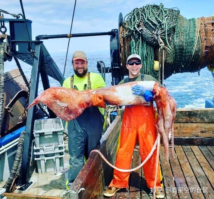 两位捕捞者(非正式渔民)正在展示他们捕捉到的大个头洪堡鱿鱼。一般会出现在市面上的洪堡鱿鱼通常体格在0.7 ~ 1米之间,超过1米的需要立即加工,否则很快就不新鲜了 在此插播一个小小冷知识: 洪堡鱿鱼是目前我国、老毛子、越南、老欧洲等地生产食用的鱿鱼丝、鱿鱼干之类的常客。 而我国、越南等地的烧烤摊上出没的,是身材偏小的枪乌贼。 至于洪堡鱿鱼,这玩意儿,普遍身材可以长到1 ~ 2米长,体重超过45千克,算上腕足,比一个成年人类都大个儿。 除了热衷自相残食,洪堡鱿鱼还喜欢互相搏斗,用带着吸盘的大腕足往对方脑袋上抡。 |