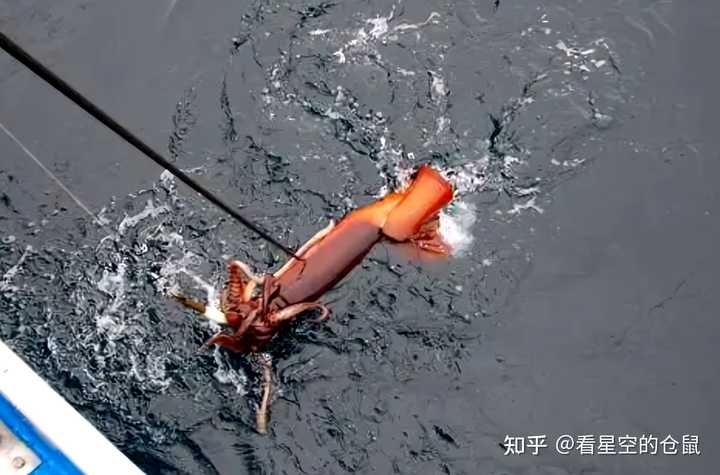 有时在掠食大群去往目的地的途中,有落单鱿鱼想加入,也有被同族猎手捕食的风险(苦笑) 嘛,同一海域的浮游生物也难逃一死,只要是活物,连这会儿在海面上划船路过的渔民也得挨一腕足(可能的话)。 如果有人类潜水员试图趁乱调查一下这个鱿鱼大群,那不好意思,大群成员会觉着人类送菜上门,会一把抓住,拖入深海。 据侥幸逃脱的潜水员表示——如果不是潜水服足够结实,下场估计跟螃蟹一样。 所以嘞,这玩意儿要怎么养殖? 别跟鼠说可以驯化,它生活在70 ~ 700米深的水下,顶着大气压在水里一点一滴教它(们)不要自相残食、不要打架、不要袭击人类,难度可想而知。 何况洪堡鱿鱼这玩意儿不蠢,可能都发展出来群体智力了,通过改变身上色彩发出光学信号,以群体为单位交流,懂得团队作战、利用环境,真给圈养起来了,哪天一言不合,就给你上演大规模越狱。 所以嘞…… 咱还是老老实实,等到每年秘鲁寒流到来的季节,这玩意儿的产卵期一过,就出动钓鱿船到相关海域,垂下带有灯光的钓钩。 不用任何鱼食儿,就能看到洪堡鱿鱼扑腾着往上窜,一钓一个准儿,前提是渔民得把钓钩沉到准确的水层,才能获利最大。 |