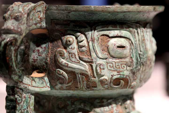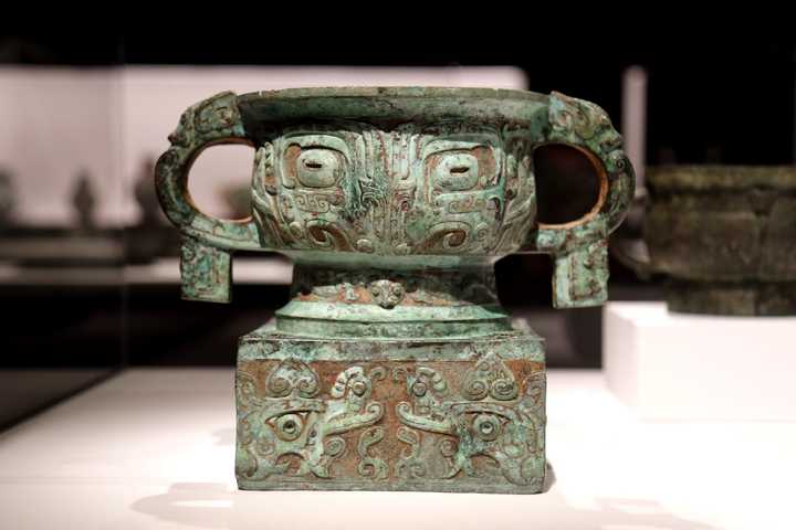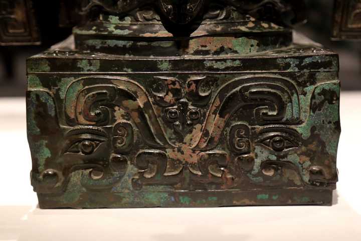商大禾方鼎,商代晚期铜器,1959年在湖南省宁乡市出土,现收藏于湖南省博物馆 |