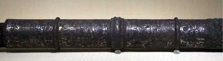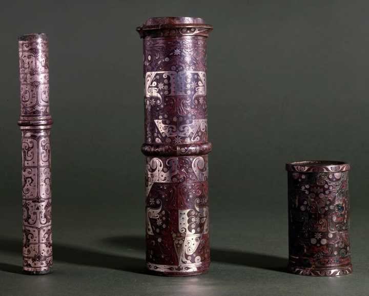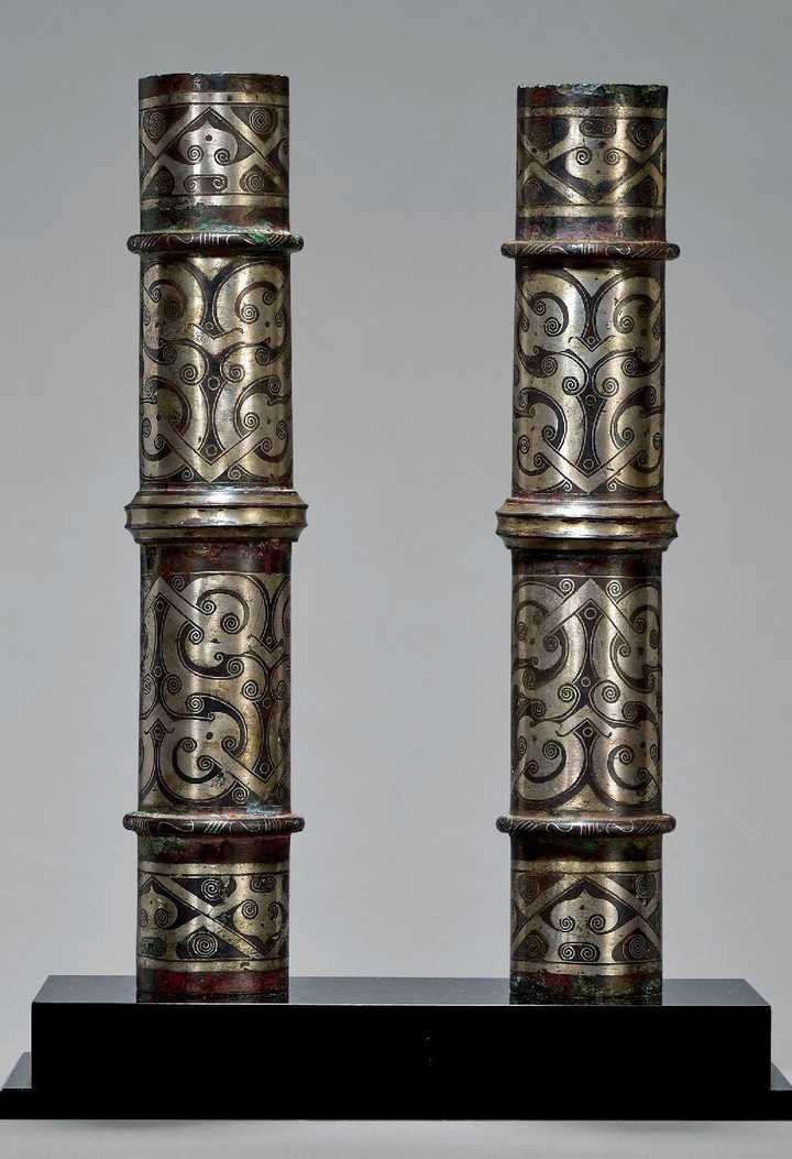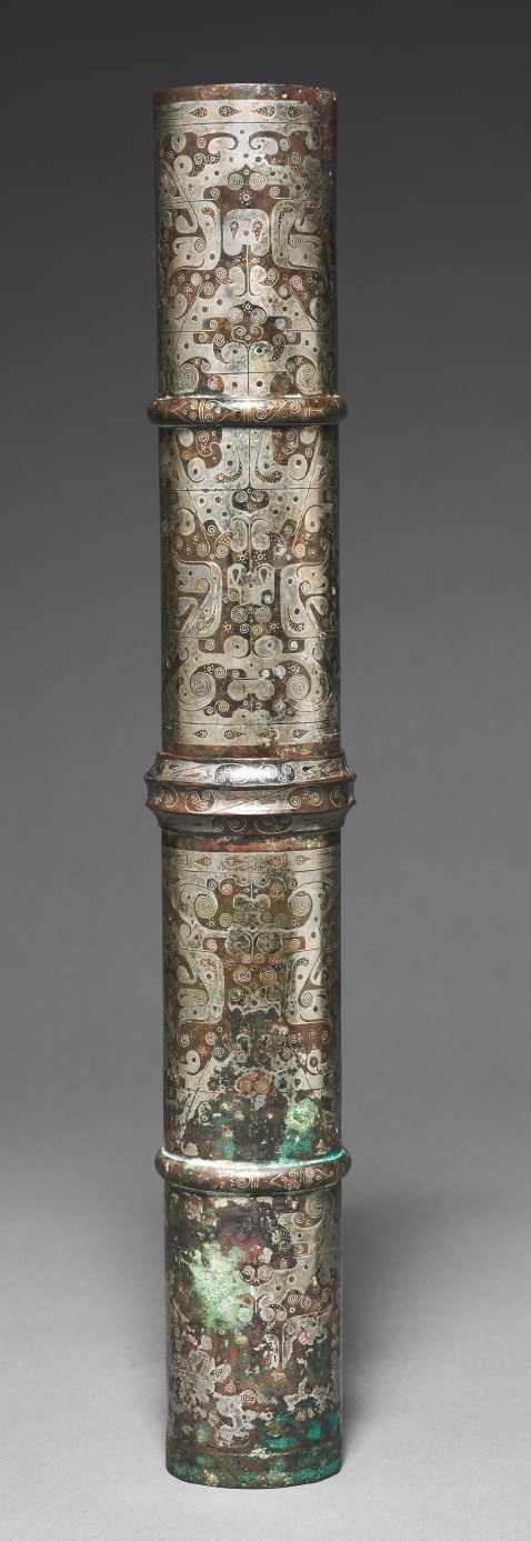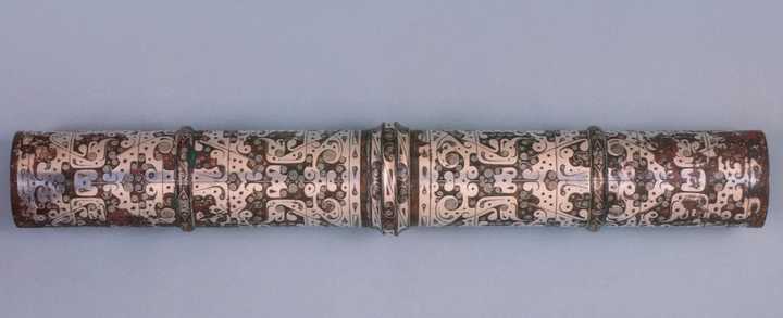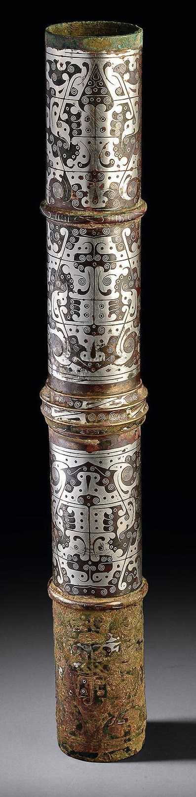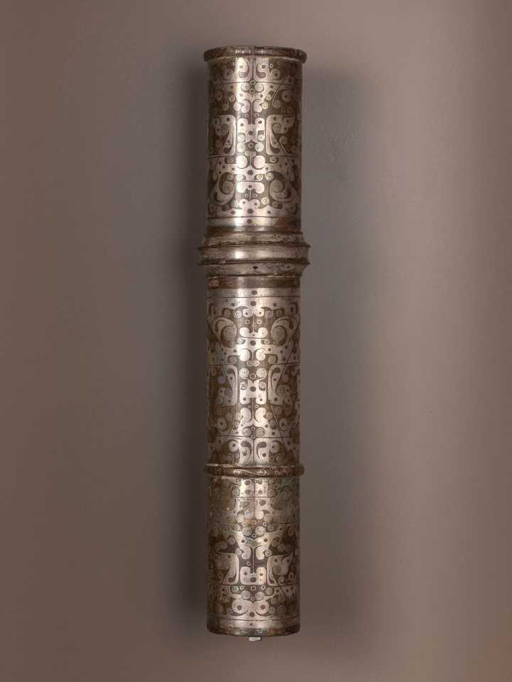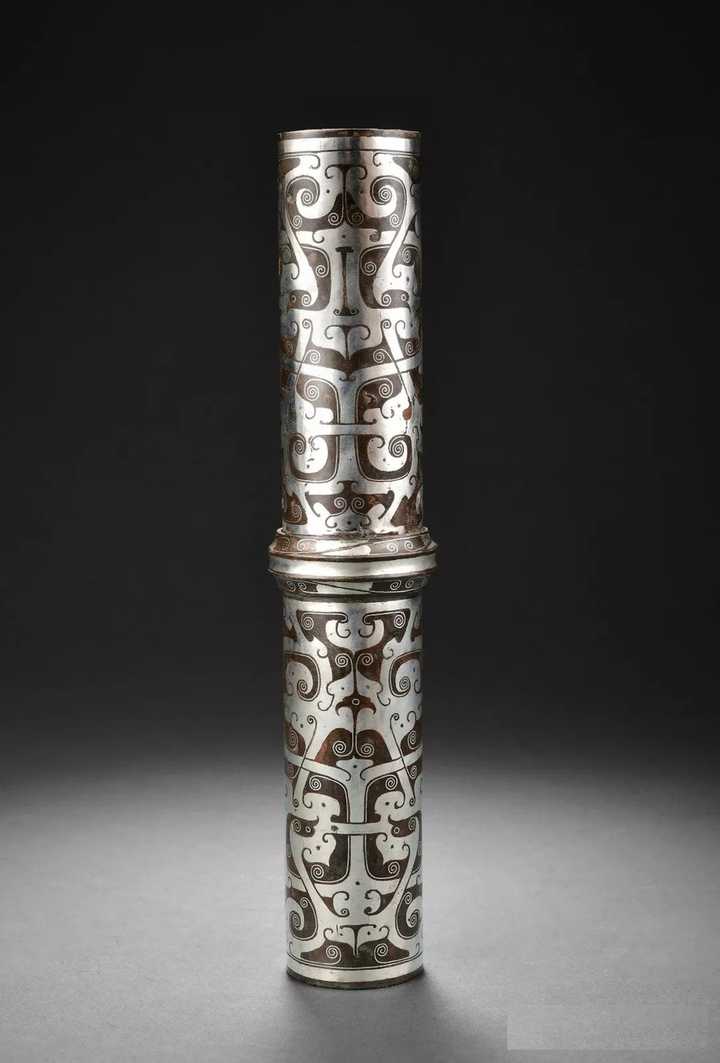 战国至西汉时期的错银车马器,长42.5厘米, 直径5.5厘米 |