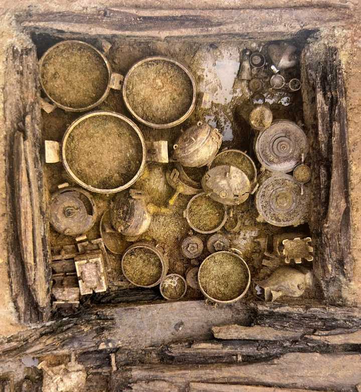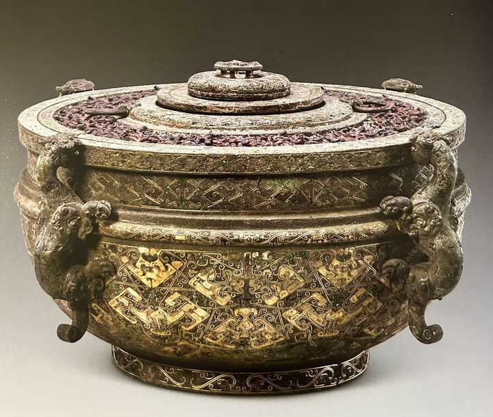 2012年湖北随州文峰塔东周曾国墓地M18曾侯丙墓出土战国中期错金云纹鉴缶 |