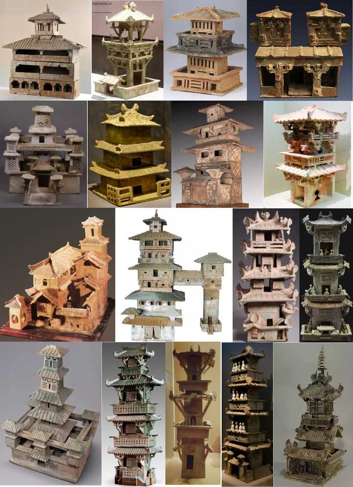 顺便说一下,资料说佛塔源自印度的“ 窣堵坡 ”,但是对比过之后你会觉得,佛塔跟汉代陶楼的关系更密切: |