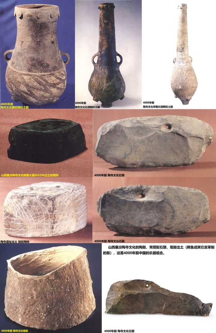 4000年前的乐器组合,陶寺文化早期的陶鼓,石罄,鼍鼓 |