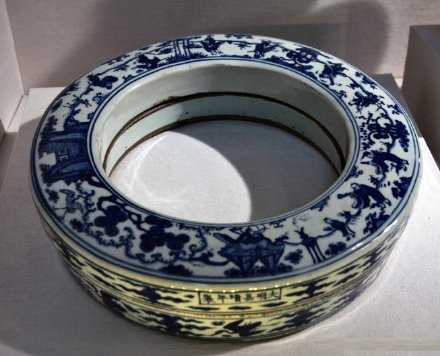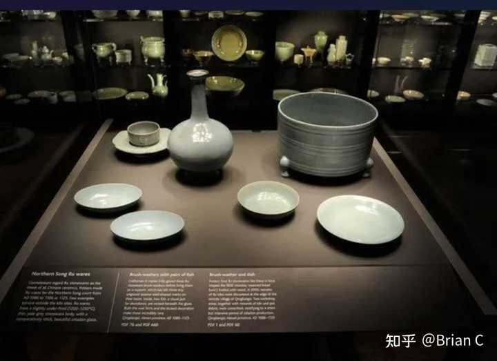 大英博物馆馆藏了7件天青釉,绝对称得上是中国古代文物的绝世孤品。就是这种顶级中国文物,也是跟其他的瓷器摆在一个大玻璃架子上,如果不仔细找,都很难发现。 |