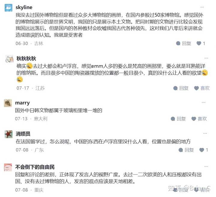 这鬼话自卑的情绪溢于言表,谄媚外国人的口气让人脸红。 世界第一大博物馆——卢浮宫,收藏6000多件中国历代瓷器精品和200多件唐宋绘画。 相比埃及区、希腊区,甚至印度区,中国文物根本没什么人看。中国文物,没有特写、没有流量,更没有荣耀。它们只是简简单单被杂乱的放在不怎么起眼的亚洲藏品,只是为了彰显法兰西帝国当年掠夺中国的成就。 |