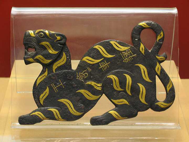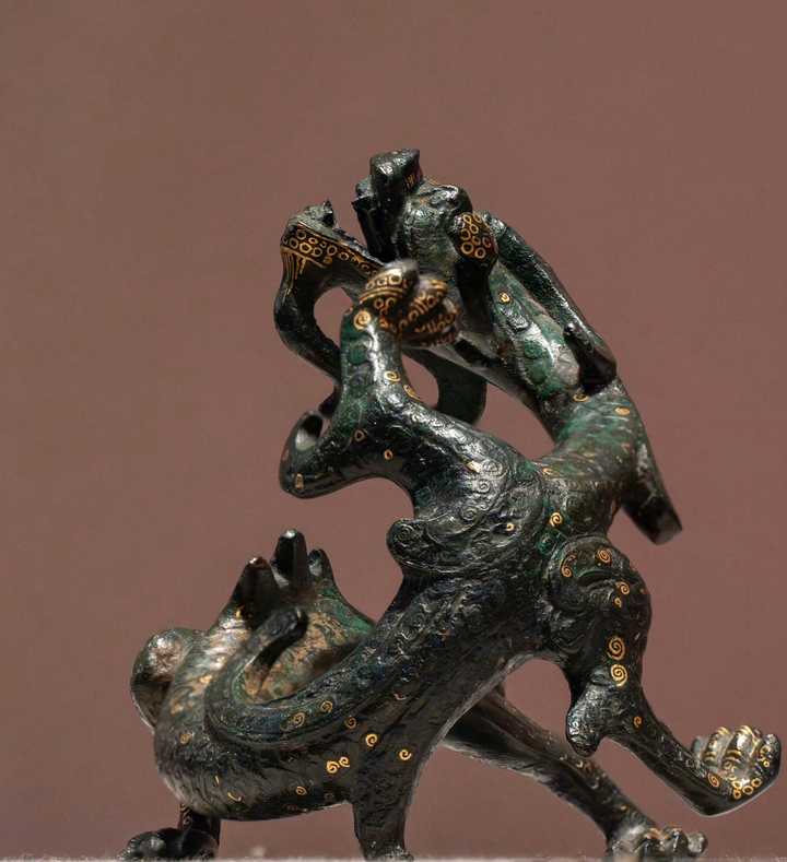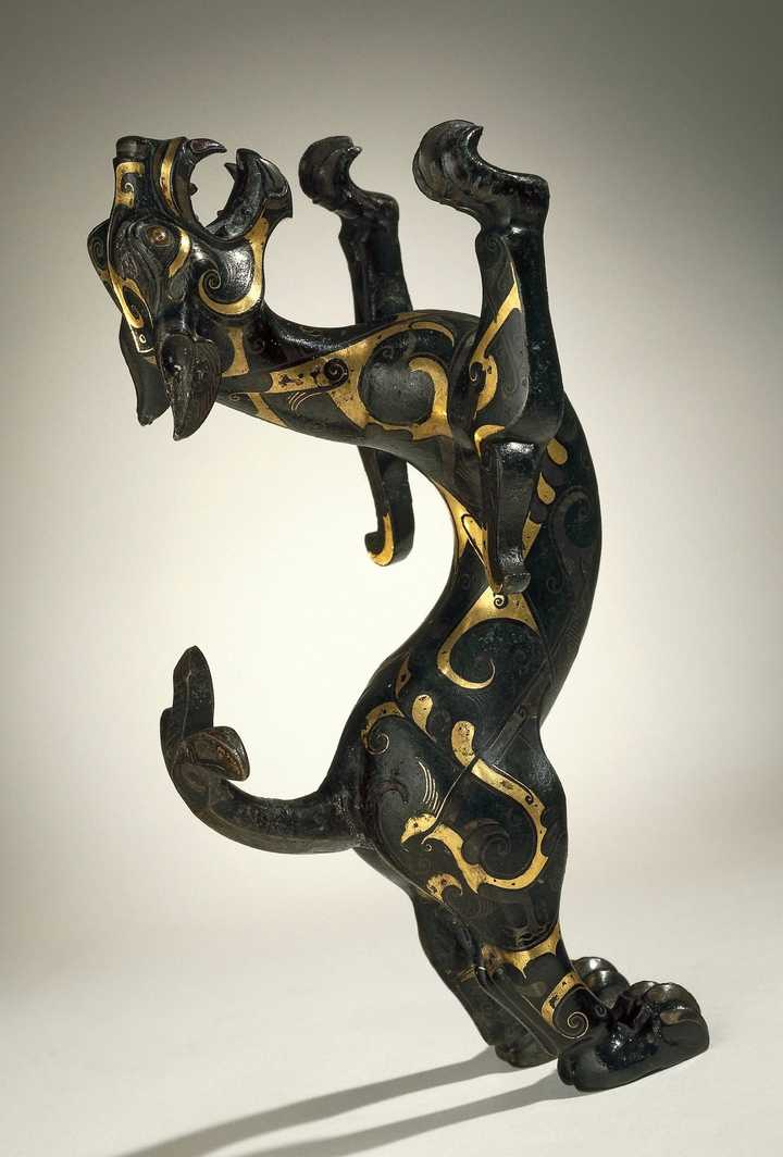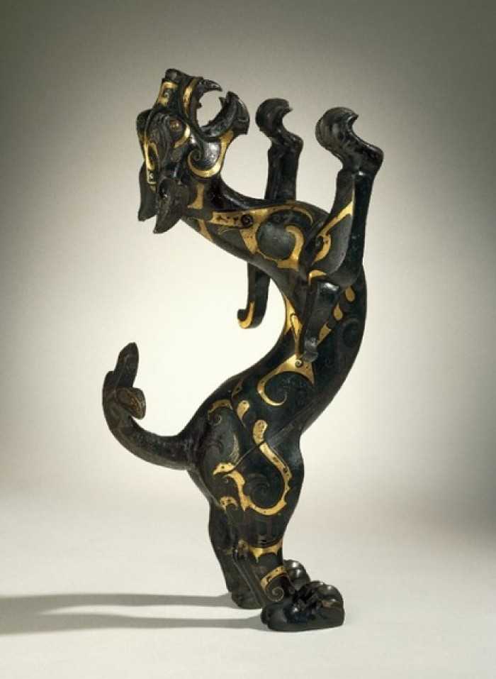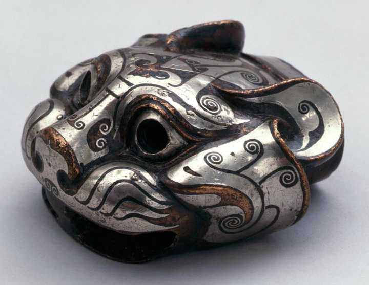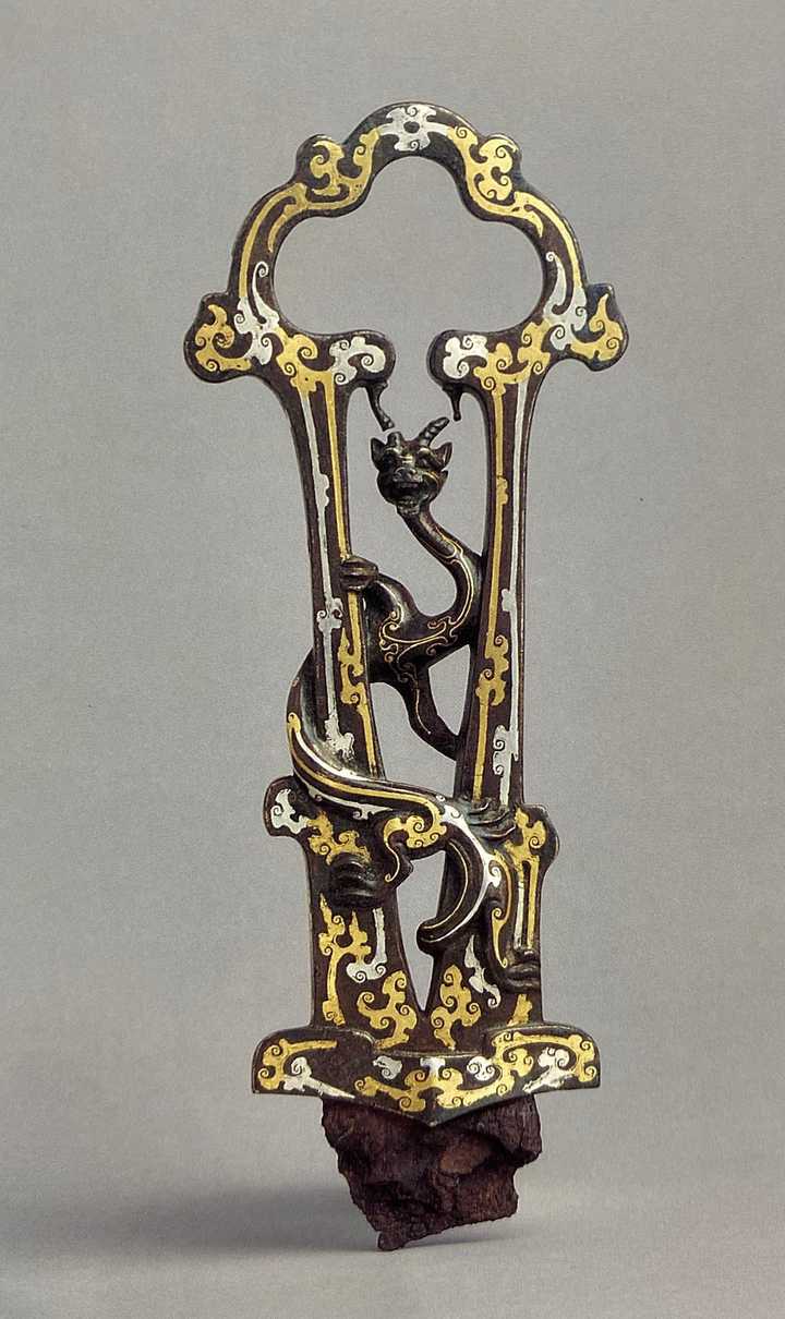 佳士得2000年拍卖的一件战国至汉代的错金银神兽云气纹铜饰件 |