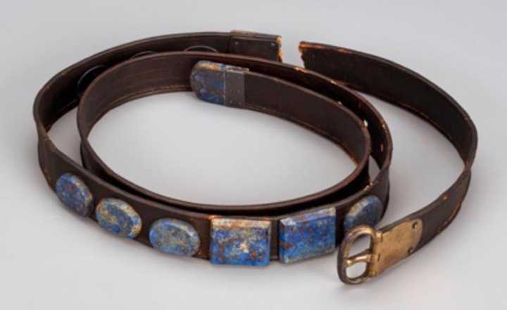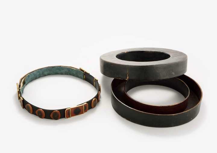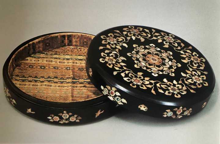 唐代皮带和装皮带的黑漆螺鈿圆盒 |