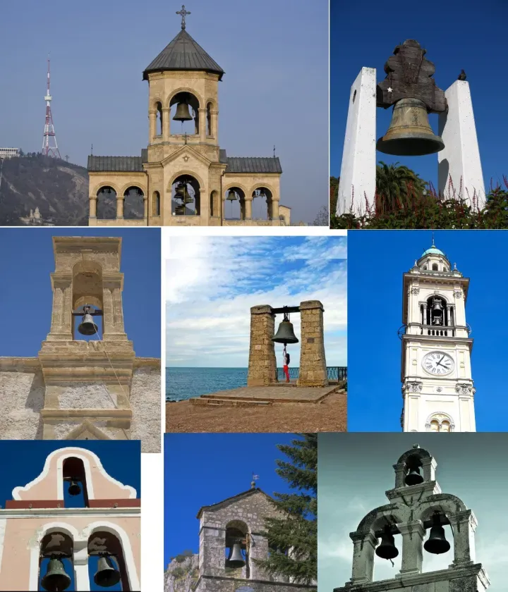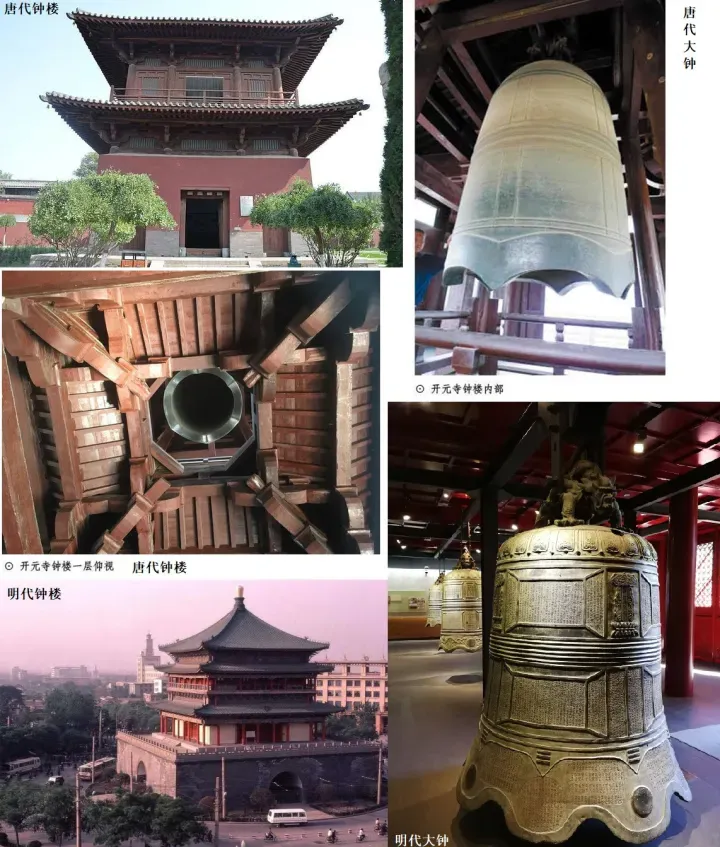 从图片资料看,欧洲早期的钟楼也是敲钟,挂的是铸钟,不是机械钟,跟中国古代的钟楼一样,晚近的钟楼,不过是改成机械钟而已,这不会是巧合: |