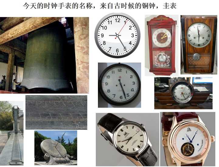 今天的时钟手表的名称,来自古时候的铜钟,圭表 |