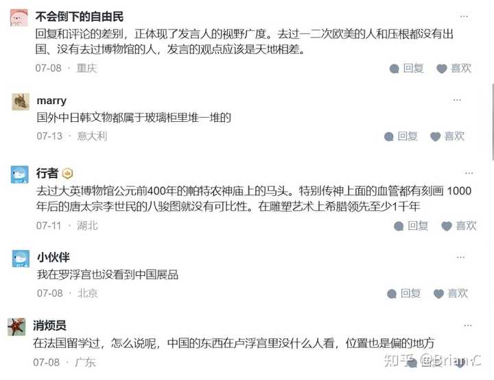 我去过50,60个国家,逛过中外上百座博物馆。 可以明明白白的告诉你,没有任何一座国外的博物馆会以收藏中国文物而自豪。 世界级的博物馆收藏鄙视链是: 古埃及文物>古希腊古罗马文物>>>伊斯兰黄金时代的文物>>>>>>>>>>>>远东地区的文物。 无论是古中国还是古印度,都是可有可无的,背后的原因也是各种因素叠加的结果。中国古代文物,跟同期世界其他地区相比,并没有独一无二的不可替代性,也不具有颠覆性影响力的标志性成果。 拿收藏了最多中国古代文物的大英博物馆举例。 最多中国人打卡的罗汉像。造型极其逼真,确实震撼。但这件罗汉像是三彩釉,而三彩釉就是烧制过的泥塑,泥土塑形在材料和工艺上相较于石雕要容易许多。更何况,这种高度写实的造型,在古希腊雕塑中是基本功。大英博物馆收藏的古希腊雕塑,论逼真程度差不多的,没有一千也有八百了。 |