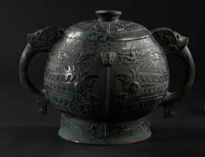 茧山龙泉堂旧藏的一件商晚期兽面纹提梁壶 |