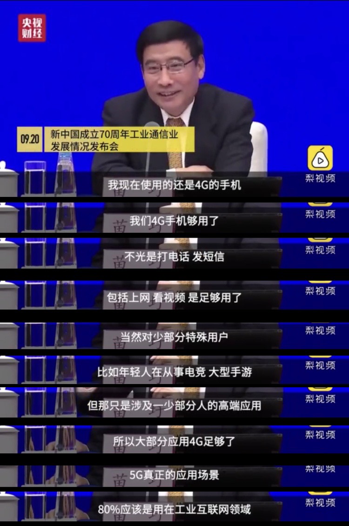 关于一些人的偷换换概念,网友揭露的平论摘选 不是说5g本身不对,而是发展5g要根据实际需要进行, 1 需要与5g应用场景相配套,况且这些应用场景本身也是一个未知的概念,把不确定事情当成确定会发生的事情,然后大规模投资,这是经济领域最典型的错误, 2 ?4G是在14年开始全面普及的,我印象很深我13年买的I5(用不了4G的那版),一年不到马上就换成I6。5G应该是去年开始全面普及,但现在就消费者而言是伪需求。 还有就是一些二极管言论令人费解。在他们眼里5G只有大规模铺设和停止发展两个选项。不存在小规模试点等其他方案。 任何技术的发展都该支持,但是一个寿命预计为8年的设备(百度查的有错误请指正),过3年了还未有什么必要的用途,我们难道不该质疑大规模铺设是否是浪费吗。 3 粉非常的可笑的一点在于,你讨论了5G的实用,但是却刻意隐瞒了现在5G并不是刚需的问题,5G跟4G明显不一样的一点在于,4G是一种刚需产品,而5G是一个未来产品,所谓未来产品就是现在还用不上,等用得上的时候,又要考虑设备老化问题,等等.这难道不算坑吗? 未来确实是追求越来越高的,但是前提是得有追求,至少目前对于大容量的视频传输也好,还是什么都好,5G还没有轮到它出场的那一天,你当然可以等,未来5G肯定是会普及的,但是我也会等,看看是设备老化跟5G普及到底哪个先来.然后我们花几千亿再重新铺一遍5G,欧耶,赚翻.? |