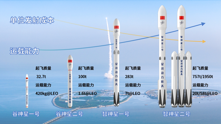 长征火箭系列图谱 而且这还不是CASC的特色,好几家民营火箭公司也是这样列自己的火箭产品图谱。 ▲300kg-58t,全谱系运力覆盖 从谷神星一号实现规模化商业发射,到智神星二号主动力系统——CQ-90百吨级液氧/煤油发动机的研制加速推进,再到谷神星二号与智神星一号两型火箭即将陆续首飞,星河动力航天已在300kg至58t运载能力范围内,构建起完整的技术体系与产品矩阵,将为我国商业航天发射市场提供更加多元、灵活且高效的发射服务,同时进一步支撑大规模星座组网需求,助力提升我国商业航天的国际竞争力。 星河动力航天双箭待发,布局运载能力全覆盖 |