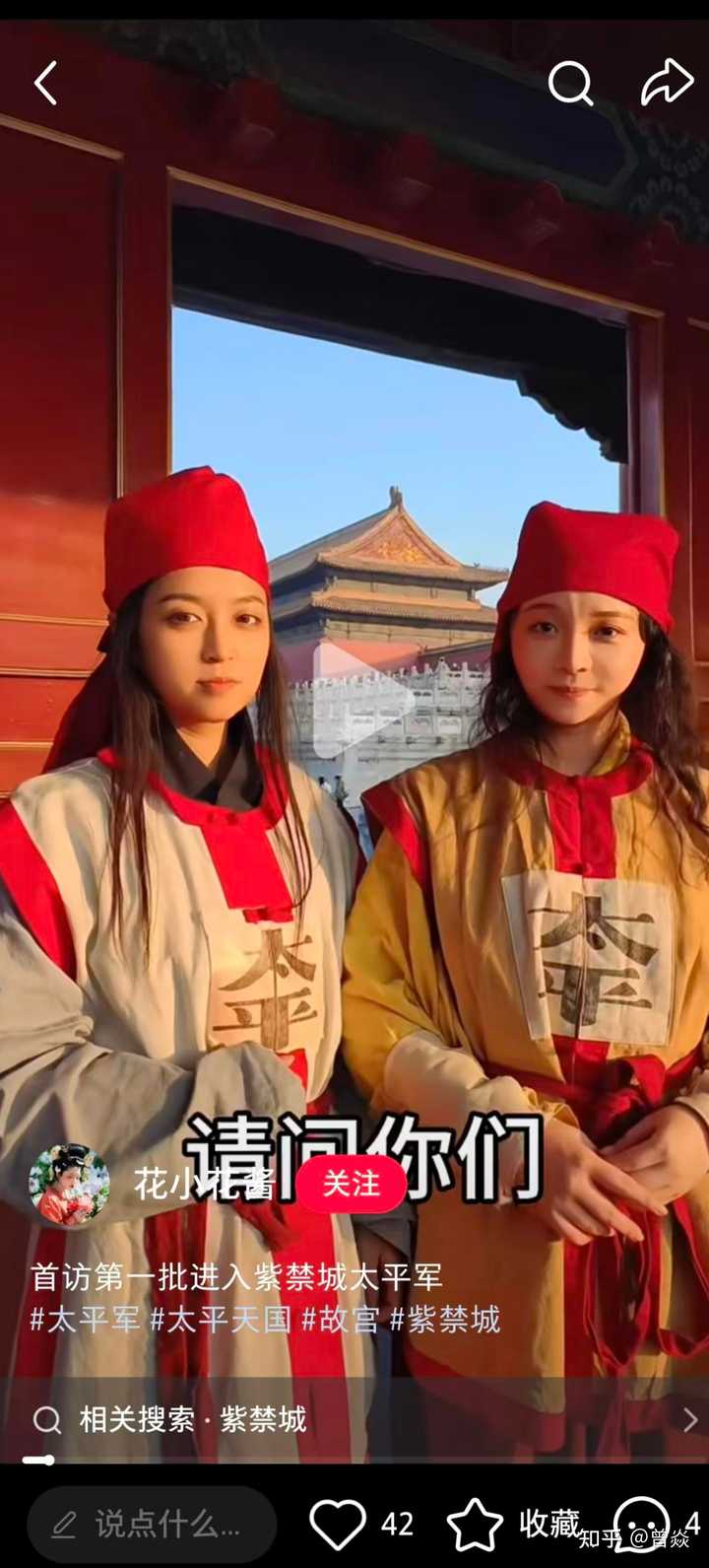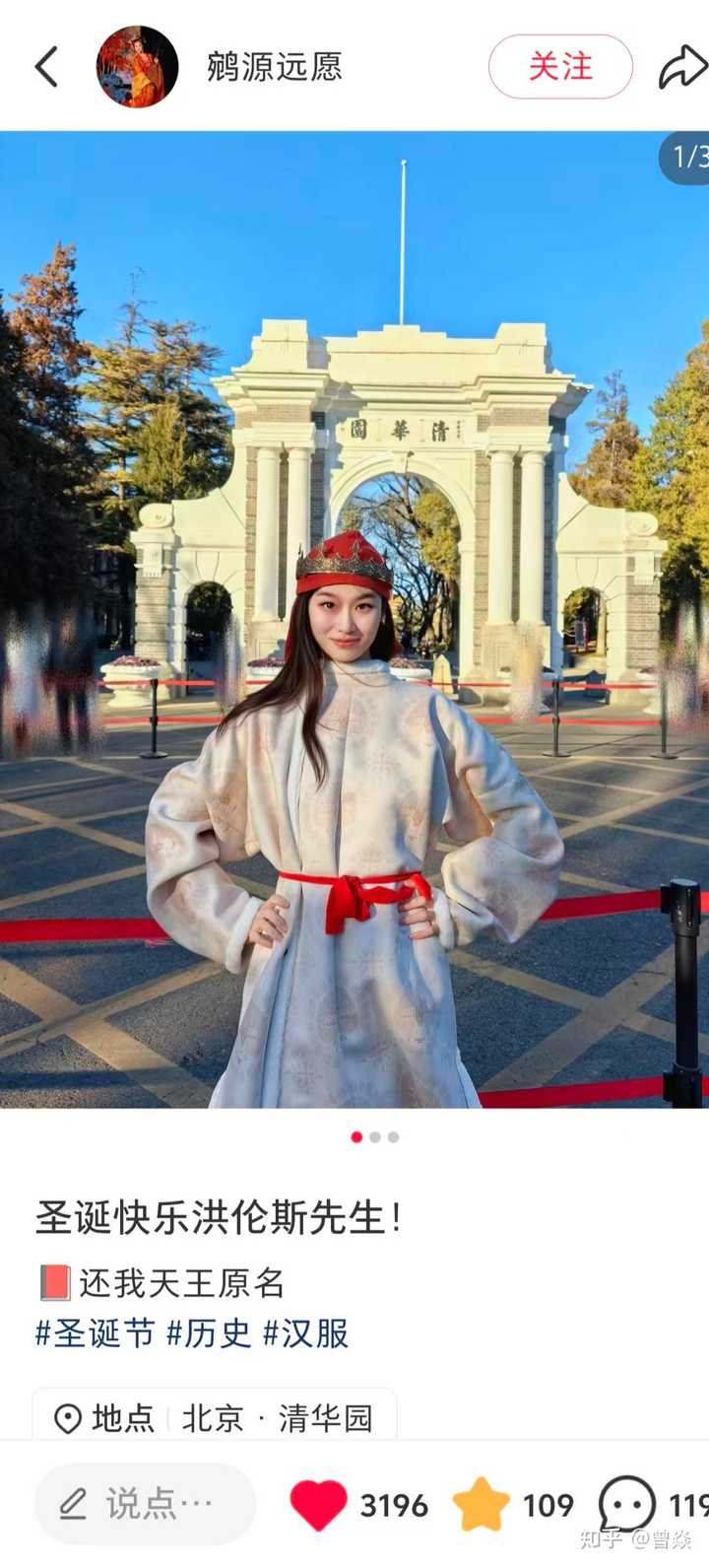 小红书的姐妹这次上大分,上来就是穿着太平军的衣服去故宫和清华园,而且清华园门口这位还是在圣诞节去的。 |