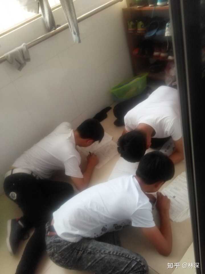放假返校作业没有写,又害怕老班查寝,趴在阳台抄作业 |