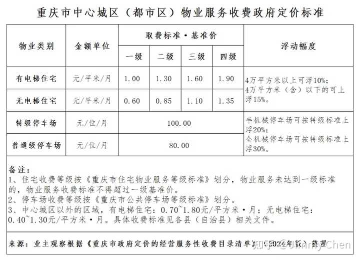 恰好我在房地产开发商工作,我们集团旗下有物业公司,刚好我有一套房是自己公司的楼盘,下半年物业费从3.5降低到了2.6,差不多砍了1/3。 降价的原因,对于我所在的城市重庆来说,主要还是因为政策的出台。 根据最近出台的《重庆市政府定价的经营服务性收费目录清单(2024年版)》,物业费的收费标准的登记划分是根据《重庆市住宅物业服务等级标准》来划分的。 |