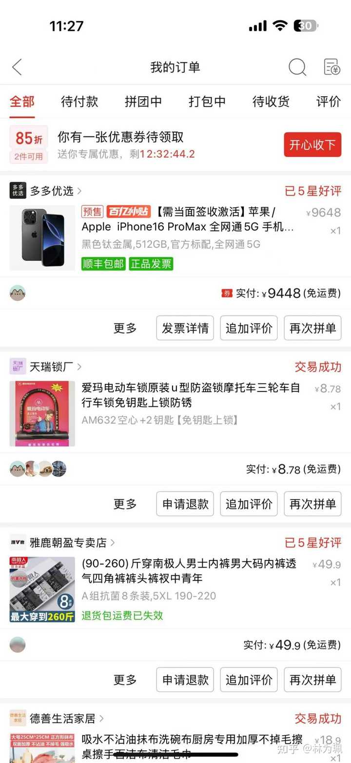 这个问题我绝对有资格回答,作为拼多多老兵,可以给大家看看我这几天的战绩: |