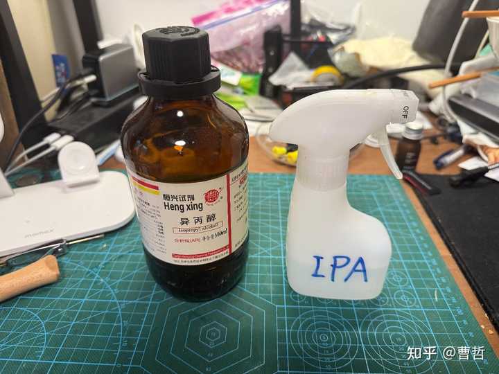 异丙醇,之前那瓶70%的溶液已经用光了,手头只剩下这瓶分析纯的,随用随配,可以拿来清洁手机、电脑屏幕、摄像头等很多东西,属于有机污物克星,除胶除油都很好使,但要使用时一定要注意消防安全。 哦对了,我用这玩意最多的场景是拿来擦鼠标和键盘,这些东西用时间长了难免油乎乎的,用IPA一擦就干净了,手感大幅提升。 |