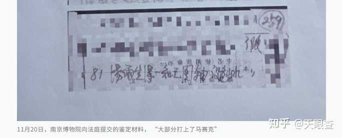 南京博物院提交的鉴定材料也引发了争议。 为证明处置的合法性,南京博物院向法庭提交了两份鉴定材料,一份是1961年的,一份是1964年的。但这两份证据大部分都打上了马赛克,仅零星露出“仇英《江南春图》假”的字样。至于专家凭什么标准判定为“假画”,记录中并未展现。 而且南京博物院一直没说清楚,一幅曾被标注为‘假’的仇英《江南春》图卷,如何出现在拍卖市场上?其余四件画作又流通到了何处? |