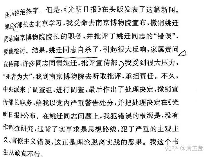 以上为截止2025年12月全部消息 三:姚迁事件始末与本事件关系 (需要结合姚迁事件看,不看后面接不上) 因为别人已经贴了相关内容,我就不再全问贴了,大家可以先移步看这个回答,看完来看笔者的补充内容:姚迁事件( @信古斋主人 ),以下内容需要看完姚迁事件才能理顺: 看完上文后,你会发现,南京博物院现在的问题,其实有迹可循,并能追溯到姚迁事件,其中疑点重重,姚迁在1984年自尽后1985年立即被平反,已经说明错不在他(后贴新华社当时平反通讯),此件事最大的谜团,也就是本事件的最终答案,就藏在这件事的问题里: 指使光明这种国家级报刊发文抨击姚迁的人,就是当年借画的人 (猜测来说,其相关后人,应和本次事件有关) 姚迁当时虽是南京博物院院长,但是这种能上纲上线到国家级媒体,并且连发新闻及社论的事情,1983改开后的时代已经是极其罕见了,而且从事件处理结果来看,更是谜上加谜,因为亲手办理此案的领导也不知道为什么办理此案,更不知道出于什么目的组织对姚迁的审查,下面内容为事件亲历者,时任江苏省委宣传部副部长的胡福明回忆(内容出自:胡福明自传--《我的学术小传》江苏人民出版社2016-中“南京博物院院长姚迁自杀事件,148P-149P内容) |