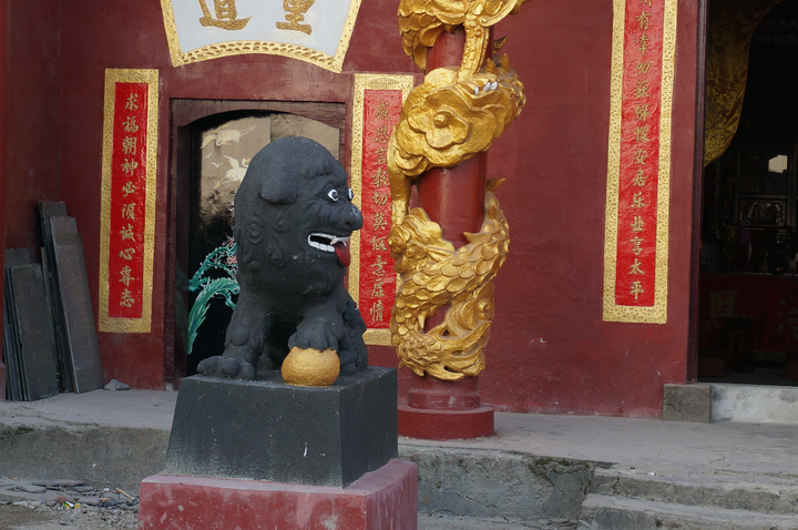 …… …… …… (“你造吗,道可道,非常道哦。”(鬼脸(笑))) 笑你妹啊!你是狮子还是狗啊!你眼睛在看哪啊!道观门口一只狗是几个意思啊!狮子的话为啥舌头伸这么长啊!说好的尊狮重道呢?这坨散光的黑二货哪里展现出道家的威严了啊!天地不仁啊,你到底是哪家神兽哔了狗生下来的啊! 不要问我当时的表情是什么样的,因为, 我同伴给我拍下来了。 |