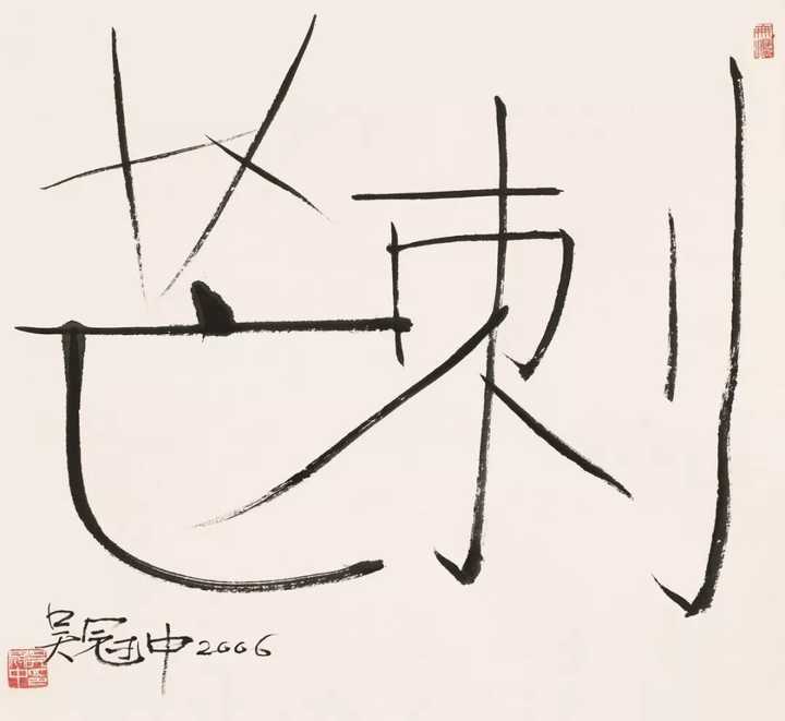 我国有一位著名画家叫吴冠中,他曾经思考过一个问题:汉字作为一种象形文字,和绘画的边界在哪里? 于是有了: |