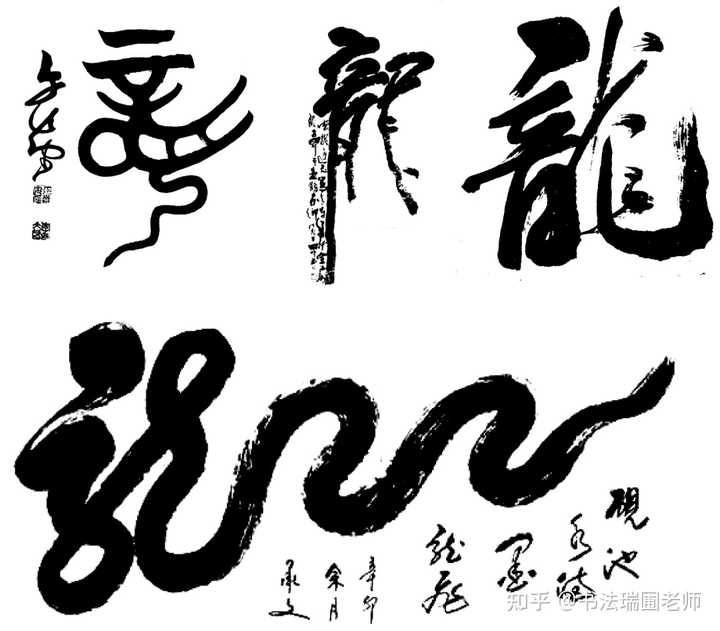 三是审美趣味庸俗。 在内容上,偏爱书写“龙”、“虎”、“剑”、“道”、“福禄寿”、“海纳百川”、“天道酬勤”等几个固定、寓意吉祥的大字,缺乏文化深度和创新。在形式上,喜欢用鲜艳的彩色墨水、金光闪闪的颜料,或在画面上加盖大量无意义的印章,追求一种表面上的“华丽”和“气势”,实则充满“土豪”气和市井气。 江湖书法~龍 |