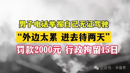 离谱!内蒙古男子报警举报无证驾驶竟是“太累了,想进去待两天” |