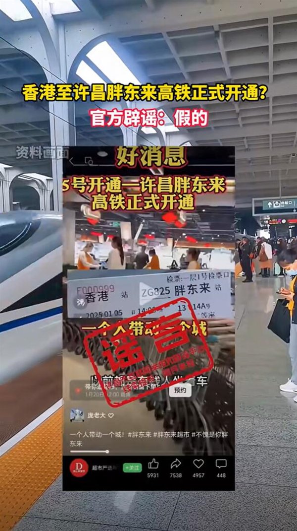 香港开通到胖东来的高铁为不实消息:车票图片系虚构|香港|高铁|许昌市 |