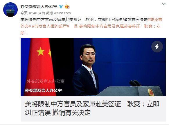 美国将限制中方官员及家属赴美签证,外交部发声了! |