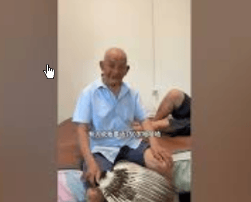 102岁高龄的[孙子姓名……] 一段视频截图显示,一位祖父和他的孙子在街头喝钙奶。