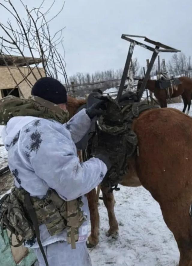 最离奇前线景象:俄军部署战马,马背架设“星链”互联网卫星天线