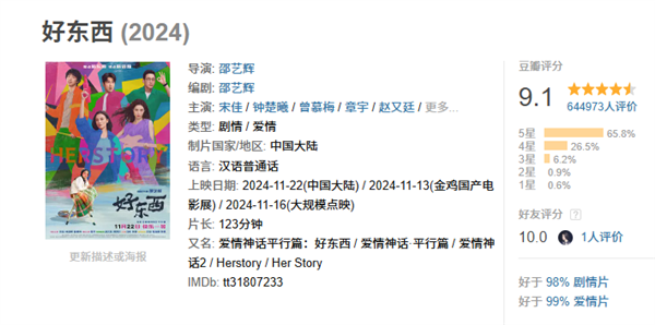 豆瓣2024评分最高华语电影!《好东西》票房突破7亿 |