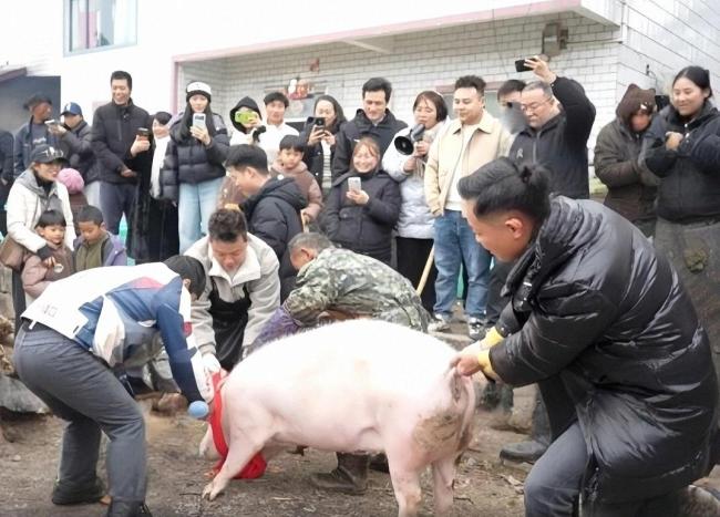 一首即兴弹唱把屏幕内外的人一起拉回记忆里的杀猪饭。11日当天,两头自家年猪临时加码到五头:网友自带一头、企业赞助两头、景区捐赠一头。田埂端碗、篝火唱歌,300桌流水席从中午摆到深夜。陌生人在同一口锅里舀汤,在同一段篝火里跳舞,手机电量耗尽、嗓子喊到沙哑,却没人提前离开。