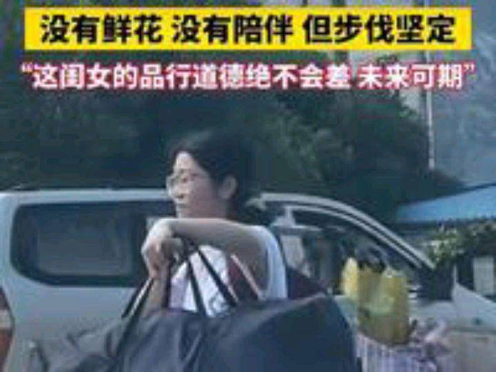 6月10日下午5时,同考场家长拍下这幕上传抖音。最初配文只有一句:"考完试自己回家的姑娘"。