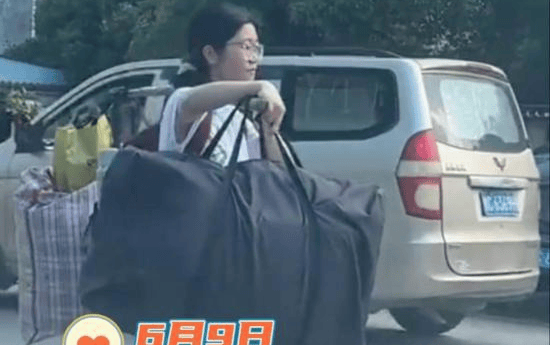 七十年代知青用扁担挑稻谷,九十年代父亲用蛇皮袋背棉被,而今天她用编织袋扛起了知识改变命运的期望。